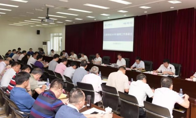 7月5日上午,我校在行政楼八楼会议室召开党委中心组学习(扩大)会,先行学习中共中央关于在全党开展“不忘初心、牢记使命”主题教育的意见精神,并召开暑期工作部署会。校领导、各部门负责人、各二级学院党政负责人参加会议。