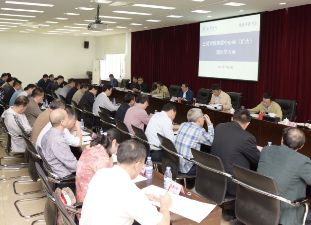 党的十九届四中全会召开后,我校广大师生通过报纸、电视、广播、网络等不同的媒介形式,及时了解党的十九届四中全会内容,领会会议精神。11月4日,校党委结合“不忘初心、牢记使命”主题教育,召开理论中心组(扩大)学习会,原原本本地学习了党的十九届四中全会公报和四中全会精神传达提纲。校领导班子和全校副处级以上干部、各党支部书记参加会议。