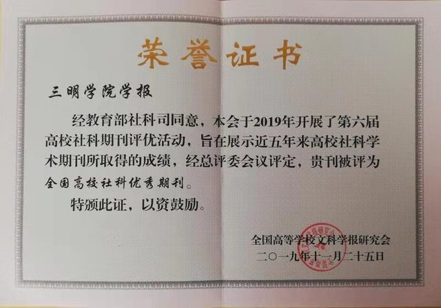 《三明学院学报》喜获殊荣,充分展示了我校学报的办刊水平,有助于进一步扩大学报的影响力。