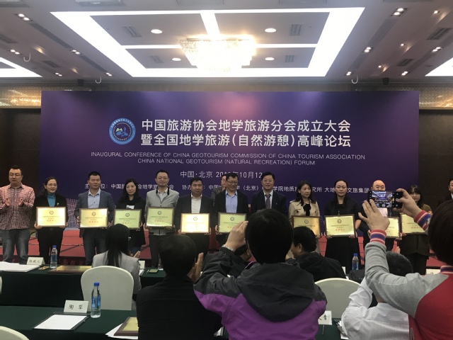 10月12日,中国旅游协会地学旅游分会成立大会暨全国地学旅游(自然游憩)高峰论坛在北京中国地质大学国际会议中心举行,中国旅游协会领导、国家相关部门领导、特邀院士、相关兄弟协会领导、著名学者、全国28个省(市、自治区)的地学旅游分会发起会员单位代表共156人出席会议。大会选举产生了首届理事会,我校作为发起会员单位之一当选为理事单位。