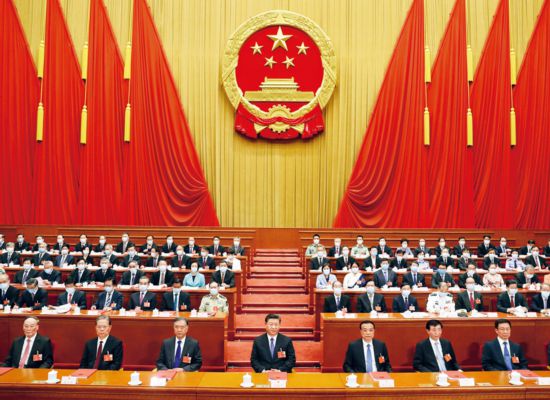 2020年5月28日,第十三届全国人民代表大会第三次会议在北京人民大会堂闭幕。党和国家领导人习近平、李克强、汪洋、王沪宁、赵乐际、韩正、王岐山等在主席台就座,栗战书主持闭幕会并发表讲话。 新华社记者 鞠鹏/摄