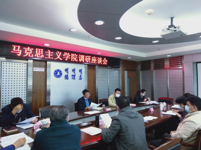 为深入贯彻落实中共中央办公厅、国务院办公厅《关于深化新时代学校思想政治理论课改革创新的若干意见》精神,进一步加强马克思主义学院建设,3月16日上午,我校马克思主义学院调研座谈会在行政楼五楼会议室召开,潘玉腾校长、廖景榕副书记出席,人事处、教务处、科研处负责人和马克思主义学院领导班子成员参加了调研座谈会。