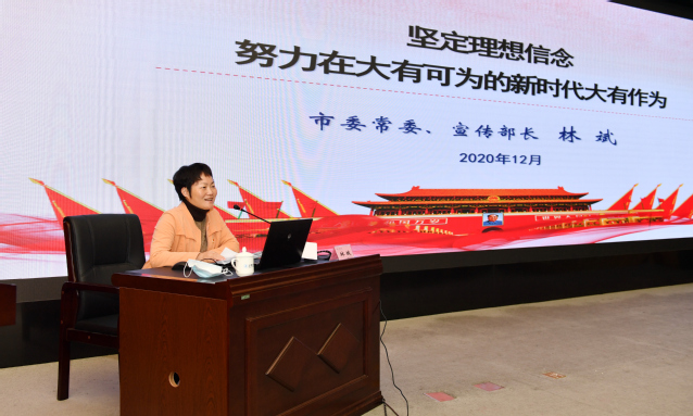 12月24日下午,三明市委常委、宣传部长林斌来校为青年大学生上了一堂生动的思政课。校党委赖锦隆副书记主持。