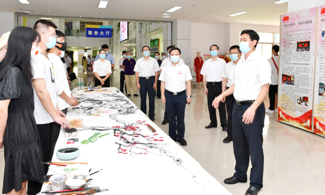 余红胜来到学校图书馆,先后同现场撰写“盛世强音”书法作品、共绘“欣欣向荣”国画作品、参与党史知识答题的党员师生们亲切交流,勉励青年学子牢记习近平总书记殷切嘱托,热爱伟大祖国、树立远大理想、练就过硬本领、锤炼品德修为,积极投身强国伟业,奋力奏响盛世强音。