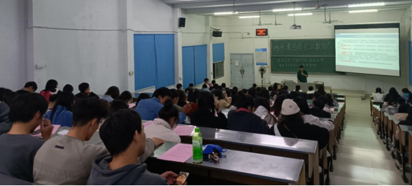 海外学院(外国语学院)资助政策宣讲团成员沈志强详细介绍国家励志奖学金的评分细则,使同学们更加清楚的了解评议的过程。其次全体家庭经济困难学生签署诚信承诺书,宣讲团成员向同学们普及征信、金融等相关知识,号召同学们树立诚信观念、增强法律意识,使自己成为适应社会主义市场经济需要的诚信人才。最后,观看国内漫画家林超的《那年那兔那些事儿》,漫画将中国近现代历史上的一些军事和外交的重大事件以Q版动物造型的形式展现出来,以生动有趣的形式,让同学们接受爱国主义教育。
