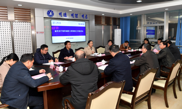 校领导感谢省民宗厅对学校工作的关心和支持,表示将认真贯彻中央民族工作会议精神,在省民宗厅指导下,进一步守正创新做好民族宗教工作;按照“做强工科、做优师范、做特文科”的学科建设思路,紧密结合地方发展需求建平台、聚团队、引人才,特别是围绕民族宗教工作“做特文科”,打造特色平台窗口;持续拓展和深化,推进民族宗教工作与学校各方面工作的融合和提升,为民族团结进步事业多做贡献。