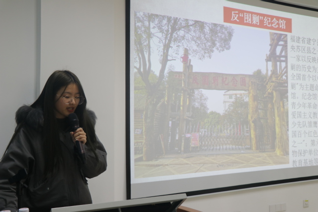 亲近家乡文化,重温红色记忆。现场支部生党员肖琳、余雨婷同志通过图文并茂的方式分别介绍家乡尤溪朱熹文化,建宁反围剿纪念馆的红色历史,激发党员爱家、爱国的情怀。
