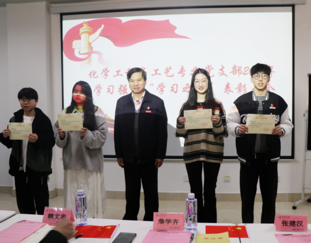 用好学习强国,争当学习之星。支部开展了2021年度学习强国“学习之星”表彰大会,经过一年的比学赶超,支部脱颖而出了陈儒斌等4名学生党员学习强国年度积分达到18000以上的好成绩。现场詹书记为这4名同志颁发学习强国“学习之星”荣誉证书以资鼓励,激发党员学习的热潮。