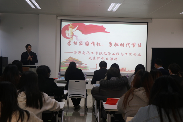 为扎实推进党史学习教育,强化党员责任感和使命感,厚植爱家、爱党、爱国情怀,化学工程与工艺专业党支部于1月4日下午开展了以“厚植家国情怀,勇担时代重任”为主题的党日活动。校纪委书记詹学齐出席,学院党委书记、党委副书记、支部教师党员、支部书记及36名学生党员参加。
