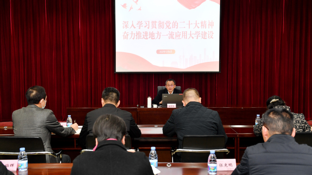 林建伟强调,学习好、宣传好、贯彻好党的二十大精神,是当前和今后一个时期的首要政治任务。各部门要深入了解掌握党的二十大精神的丰富内涵和精髓要义,切实把思想和行动统一到党中央决策部署上来,推动党的二十大精神深入人心、见行见效;要坚持用党的二十大精神指导科技创新、社会合作、财务管理、对外交流、继续教育等工作,结合部门实际找准切入点、着力点、落脚点,全力助推学校走出一条契合办学规律、符合社会需求、具有鲜明特色的地方应用型办学新路。