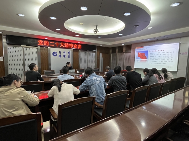 12月1日,校党委副书记廖景榕结合分管领域和学校实际,面向党委组织部、宣传部、学生处、校团委、图书馆等部门党员干部宣讲党的二十大精神。