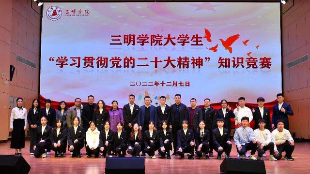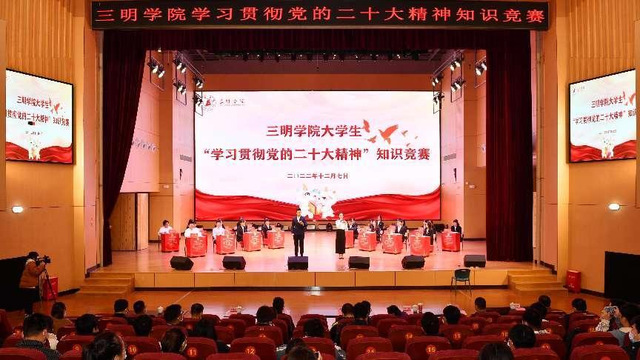 为深入学习贯彻党的二十大精神,12月7日,由三明学院学生处、校团委主办,马克思主义学院承办的“学习贯彻党的二十大精神”知识竞赛总决赛顺利举行。校党委副书记廖景榕莅临观摩本次比赛。宣传部、学工部、校团委、马克思主义学院,各二级学院党委书记、各二级学院党委副书记,全体辅导员、学生代表参加了比赛。