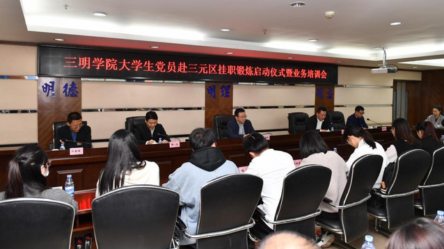 3月8日上午,三明学院举行大学生党员赴三元区挂职锻炼启动仪式暨业务培训会。三明学院党委副书记廖景榕,三明市三元区委组织部部长陈一龙出席会议。