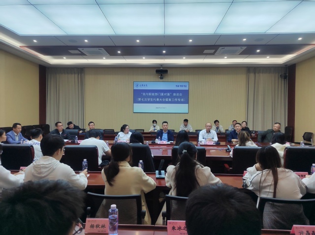 在第七次学生代表大会召开期间,161位参会代表累计提交有效提案88份,内容涉及教育教学、生活服务、学生发展、校园文化等多个方面。在本次座谈会前期,校团委、学生会经过信息核对和筛选,将其中61份提案对接至相关部门进行沟通协商。