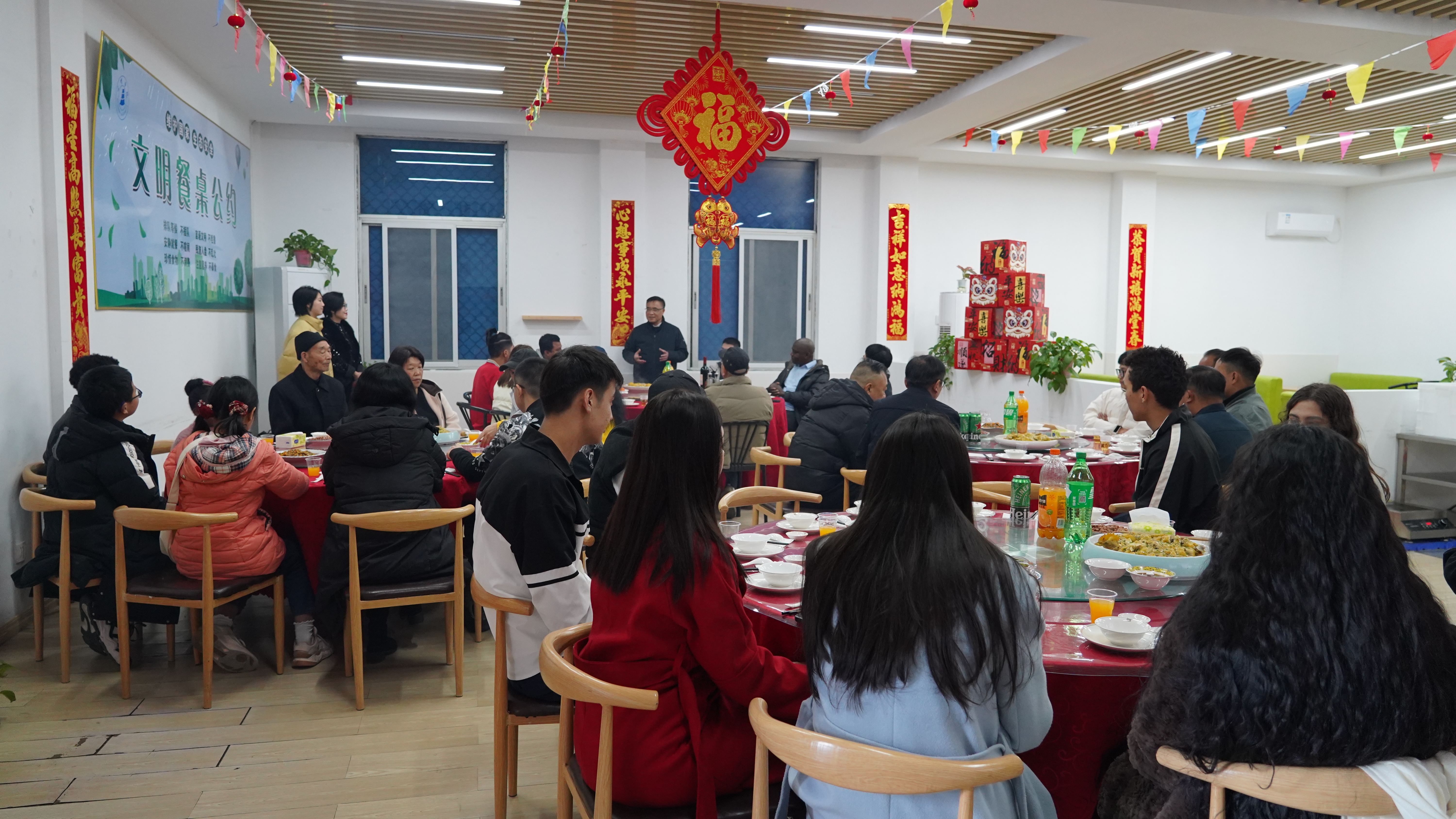 张君诚校长与留校师生和家属围桌而坐、亲切交谈,关心关注大家的学习、工作和生活情况,并致以节日的问候,祝福大家新年平安健康、阖家幸福、学业和事业进步。