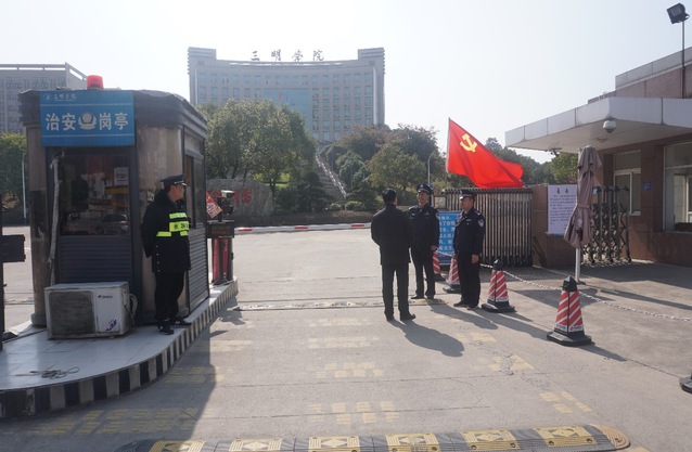 自疫情发生以来,保卫处(武装部)党支部主动联合荆东派出所,严格把好门卫关,对想进入北门、南门和三元校区的校外车辆和行人,原则上不准进入,对确因工作需要可以进入的,一律要实行实名登记,同时关闭南门和通往福利院的小门。在把好门卫关同时,保卫处(武装部)党支部还与荆东派出所模拟发现有体温达到或者超过37.3度的流程,并共同商议处置流程。