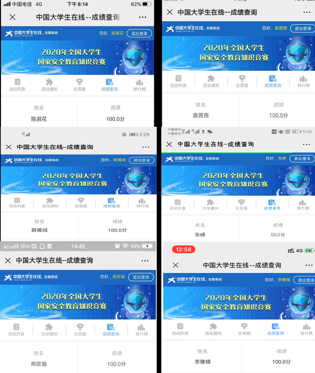 组织师生积极参与国家安全知识在线问答。加强学生国家安全普法教育,为网络安全知识的普及和学生国家安全意识的构建提供助力。活动推出后,我院师生第一时间参与知识问答,参与热情度极高,并纷纷表示作为中华儿女,国家安全与我们息息相关,我们有责任亦有义务树立起“国家安全,人人有责”的责任意识。
