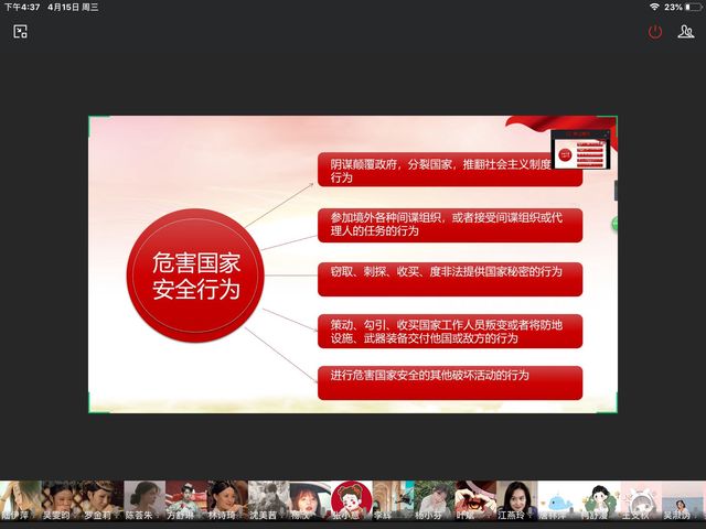 各班级线上主题班会效果显著。通过线上各种形式组织召开国家安全教育主题班会,以普及《国家安全法》《反间谍法》《反恐怖主义法》《中华人民共和国网络安全法》等国家安全法律法规和疫情防控安全知识为切入点,引导学生将总体国家安全观贯穿抗疫全过程,呼吁大家筑牢“安全长城”。