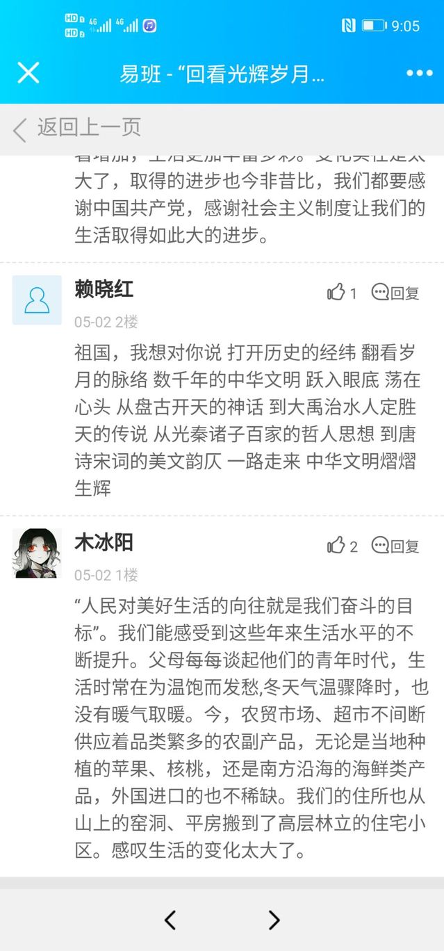 5月1日起,建筑工程学院易班工作站依托易班快搭平台开展“回看光辉岁月,我谈祖国变化”五四青年说活动,同学们积极响应,踊跃参与,结合自身感悟在易班快搭平台上发表感言。