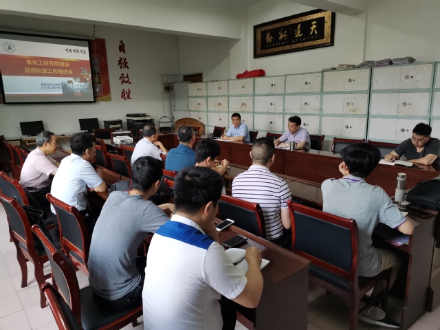 为推进氟化工研究院建设百日攻坚工作,5月29日上午氟化工研究院召开工作推进会,学院党政主要领导、氟化工研究院工作人员及化工系部分教师参加了会议。