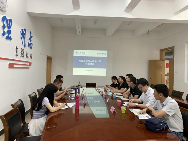 6月9日上午,泉州市人社局、中国海峡人才市场泉州分部、中国海峡人才市场三明分部一行到访我校,就《泉州市鼓励产业急需高校毕业生来泉就业创业实施意见(试行)》等泉州市人才引进相关政策进行宣介,学生工作部(处)相关人员就人才供需对接等事宜与来宾们进行了交流。