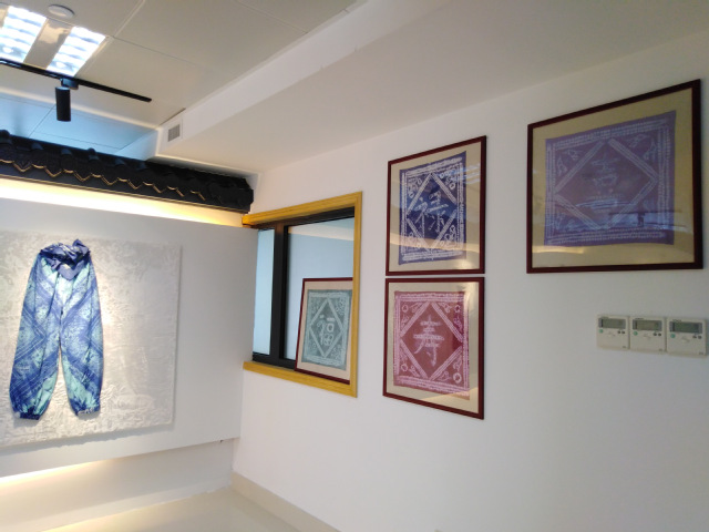 在客家蓝染技艺——三明学院文创展示区中,近三十件客家蓝染文创精品在这里悄悄绽放着客家蓝染的无限魅力,素雅、醇厚、灵动而又悠远……那一抹客家蓝、那一丝丝精细纹理、那一幅幅精妙传神图案,驻足细细品来,耐人寻味。