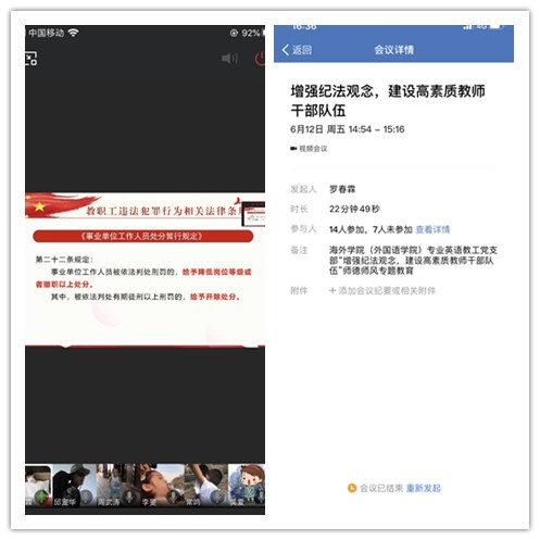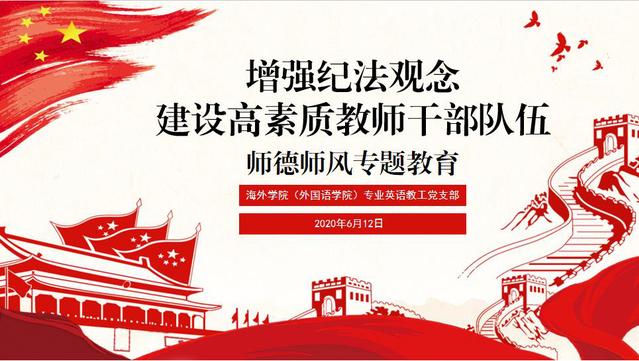 2020年是“七五”普法收官之年,也是第二届省级文明校园“冲刺”之年,为持续推进正风肃纪专项教育活动,深入开展法治宣传教育,不断增强广大师生的法治观念,夯实“平安校”坚实基础。6月12日,海外学院(外国语学院)专业英语教工党支部开展主题为“增强纪法观念,建设高素质教师干部队伍”师德师风专题学习教育活动。本次专题学习采取自主学与集体学相结合的形式,支部副书记罗春霖“以案释法”,组织支部教师学习《中华人民共和国刑法》《中国共产党纪律处分条例》《事业单位工作人员处分暂行规定》《民法通则》《侵权责任法》等法律法规中的相关条例。