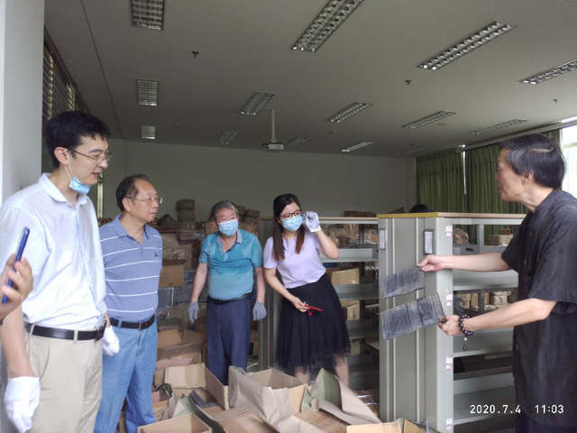 近日,福建省古籍保护中心办公室许建平、张美莺、林益莉,福建师大方宝川教授、福建人民出版社古籍部主任宋一明博士莅临我校,就福建新华出版发行集团捐赠图书的保护与整理工作与有关人员进行面对面交流和实地查勘。