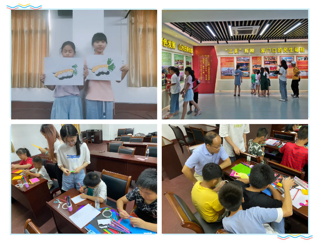 在高塘镇小学严副校长的精心安排下,志愿者们以村支部会议室为主要教学场所,开展了为期一周的实践活动。实践队队员们结合常口村30余名留守儿童实际需求,以教育展关怀,以真情发挥专业特长,开展“抗疫英雄教育课”、“心连心快乐成长”心理健康教育课、共唱“唱爱国歌曲”、手工与绘画艺术小课堂、暑期自护教育课等系列特色活动,寓教于乐,深受孩子们喜爱。