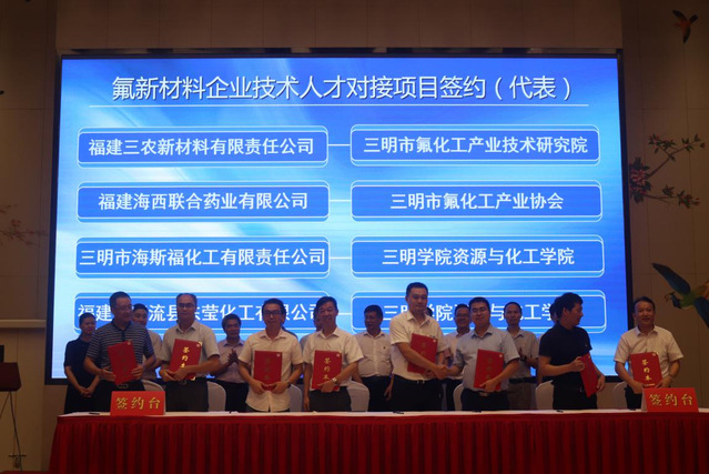副市长程鹏鹰在开幕式致辞中介绍了三明地区经济、文化、资源条件、产业基础等情况,副市长表示三明市政府高度重视氟新材料产业发展,希望各地企业家及优秀人才注资三明发展氟新材料产业,不断增进交流合作,主动把握行业发展机遇,抓住氟新材料产业前景好、发展空间大等契机,坚定发展信心、坚持市场主导、抓紧项目布局,以新项目、新技术、新产品推动氟新材料产业在三明聚集发展,共同推进三明氟新材料产业再上新台阶。此次会议共有四组“手拉手”项目代表进行了对接签约,分别为氟新材料企业产业链互采互购组、氟新材料企业技术人才组、氟新材料企业资金组、氟新材料企业萤石资源组。通过此次项目对接活动建立健全氟化工高质量体系,增强创新能力,攻关产业核心技术,优化产业结构和发展环境,培育具有核心竞争力的新兴产业。