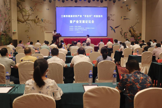 9月11日,由三明市人民政府主办,市工信局、氟化工产业协会承办,氟化工研究院协办的氟新材料产业“手拉手”对接签约暨产业发展论坛,在三明梅园国际大酒店顺利召开。为做好“六稳”工作,落实“六保”任务,畅通氟产业循环、市场循环,提升氟产业链供应链稳定性和竞争力,促进氟产业持续健康发展进行交流。市政府副市长程鹏鹰等市领导及市直有关部门、中科院上海有机所研究员吴永明和中国氟硅有机材料工业协会副秘书长王树华及氟化工研究院代表等90余人参加了会议。