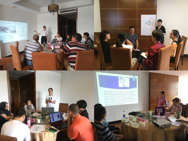 本次研习给学员留下最深刻的印象是有效教学结构演练阶段。该阶段研习内容包括BOPPPS集中专题培训、迷你教案设计、微型教学演练、团队素质拓展及培训师个性化的教学引导服务等。全体学员分四组进行,每组五人,由我校获得国际认证ISW与FDW培训资质的导师独立带领。四组学员需设定每天的研习目标,并轮流作为试讲者和学习者参与BOPPPS全流程演练活动,包括教学课题选取、十分钟微课教学设计和课件制作、十分钟微课试讲、填写同伴回馈单、引导员与试讲者一对一交谈、小组成员对试讲者反馈、大组反馈等过程。培训师对学院做了精心的个性化引导,同伴们互相交换了中肯的教学意见和建议,每位学员都全身心沉浸在欢快的研习氛围中,教学热情与智慧迸发。全体学员一致认为该教学模式有效、实用,并纷纷表示将在自己的课堂教学中进一步实践、总结并提高,不断增强做精我校师范教育的能力和水平。