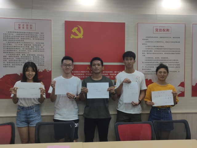 活动中,党支部书记董健同志首先带领全体学生党员学习了习近平总书记关于制止餐饮浪费行为的重要批示精神,以及中央纪委国家监委印发《关于贯彻落实习近平总书记重要批示精神加强监督执纪坚决制止餐饮浪费行为的工作意见》和省纪委、校纪委有关文件精神。随后,学生党员们针对如何发挥出党员的先锋模范作用制止餐饮浪费、践行“光盘行动”踊跃发言。同学们谈了对制止餐饮浪费重要性的认识,表示将通过节制点餐、饭后打包等行动节约粮食。最后,在党员立承诺环节,学生党员们在纸上写下“光盘行动,从我做起”等承诺语,承诺将从自我做起,带动周围同学践行“光盘行动”。