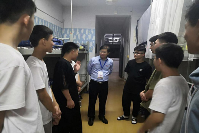 丹桂飘香,又是一年迎新时。10月13日,教育与音乐学院张新文院长,党委书记伍荣生,副书记林云及新生辅导员走入学生宿舍,看望2020级新同学。
