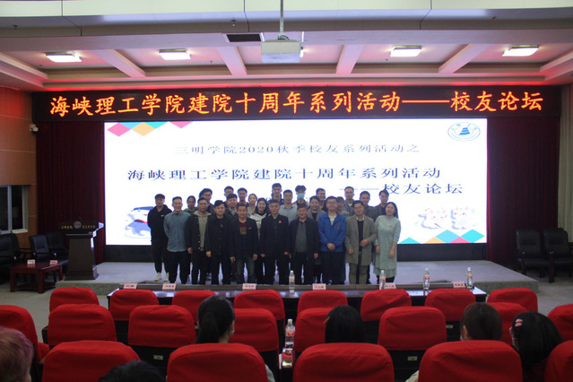 11月28日,海峡理工学院建院十周年校友论坛于三明学院逸夫图书馆学术报告厅举行。校党委副书记、校友会会长赖锦隆,“三创”学院副院长、校友会秘书长龚榕容,院领导、40余名校友以及海峡理工学院全体教职工和学生代表参加了此次论坛。