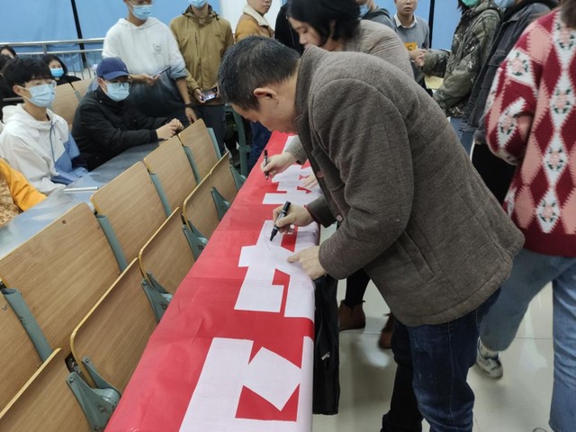 最后,由我院领导老师带头,学生依次上台签字。这不仅是领导老师对这次“五防教育”的认可和支持,也让同学们感受到学校的重视并铭记于心,严格执行规章制度,保护好自身安全。