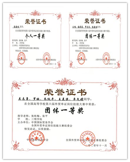 11月27日至29日,由中国国际贸易学会、教育部高等院校经济与贸易类专业教学指导委员会、中国国际贸易学会国际贸易实务教学工作委员会主办的全国高等学校(第六届)外贸单证岗位(电子化)技能大赛在福州举办。三明学院经济与管理学院贸易经济专业的13名同学组成三支参赛队参赛,经过激烈角逐,两支参赛队获得团体一等奖,一支参赛队获得团体二等奖;其中6人获得个人一等奖,7人获得个人二等奖。