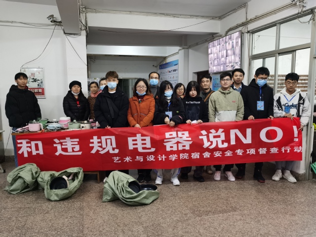 为切实加强校园安全管理,消除校园安全隐患,强化寝室消防管理,提高学生宿舍用电安全意识,促进安全文明校园建设。12月17日下午,在艺术与设计学院党委副书记官丽雅和全体辅导员的带领下,对全院宿舍开展违规电器突击检查专项活动。