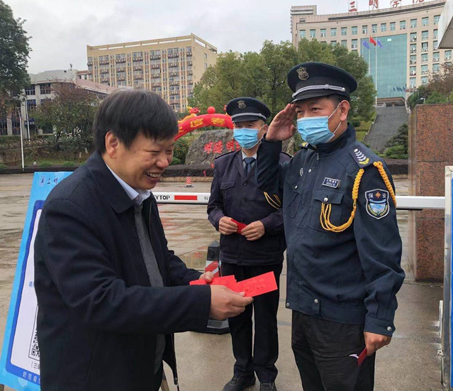 值班人员对领导的亲切关怀和新春问候深表感谢,他们表示将继续坚守岗位,认真负责的完成春节期间的工作任务,确保校园安全稳定。