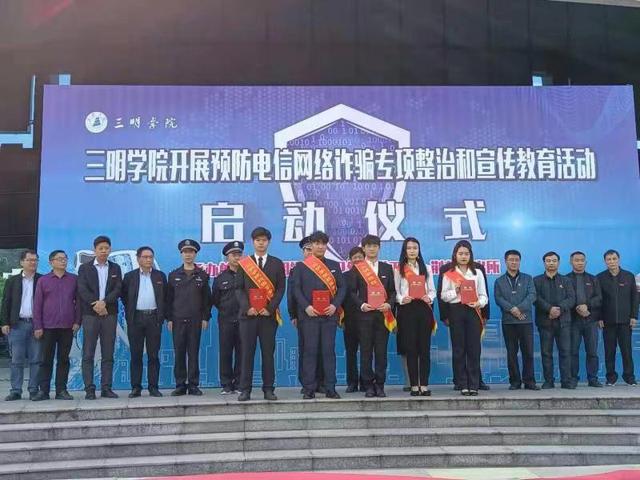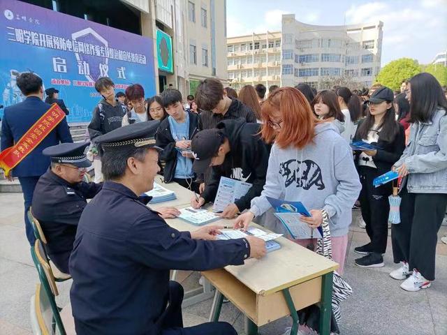3月24日下午,我校联合三元公安分局、刑警大队和荆东派出所在图书馆前举行预防电信网络诈骗专项整治和宣传教育活动启动仪式。校党委委员、副校长谢松明,相关部门负责人,各二级学院党委副书记、二级学院综治联络员、校园安全宣教队成员、学生代表等600多人参加。