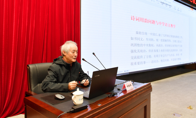 4月19日上午,南京师范大学中文系博士生导师钟振振教授受邀做客我校“致用讲坛”,作题为《诗词用韵问题与中学语文教学》专题讲座。教育与音乐学院、文化传播学院近200名学生参加此次讲座。