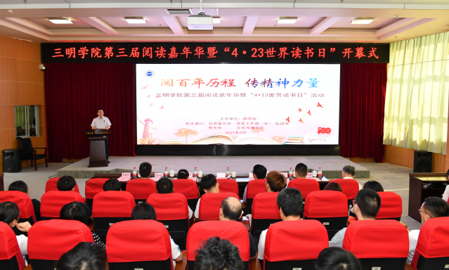 4月23日下午,三明学院第三届阅读嘉年华暨“4·23世界读书日”活动在图书馆四楼报告厅举办启动仪式,校党委副书记廖景榕,宣传部、学工部、校团委、教务处等部门负责人,二级学院师生代表及全体图书馆职工200余人参加开幕式。