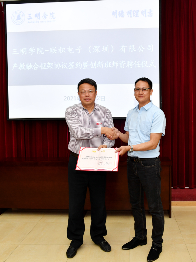 日前,我校与联积电子(深圳)有限公司签订校企合作产教融合协议。校领导兰明尚、潘玉腾、赖锦隆、廖景榕、张君诚,三创学院、信息工程学院和相关职能部门负责人出席活动。