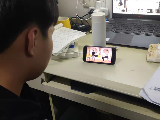 “今晚的健身直播课还真不错,教练讲解细致,气氛热烈,我们都不由自主的跟着动起来了!”紫荆园7号楼601宿舍来自资源与化工学院2020级资源环境科学班的同学们对直播健身课赞不绝口,他们正跟随体育与康养学院学生党员钟思燕同学的直播课进行健身运动。“我希望可以发挥我的专业特长服务全校师生,带动他们在疫情期间在家、在宿舍健身,更好的抵抗疫情。”2020级体育教育2班钟思燕同学说。