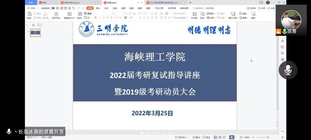 为协助2022届考研过线学生精准高效应对复试、调剂工作,3月25日晚,海峡理工院邀请信息工程学院引进生何力鸿博士作线上考研复试与调剂指导讲座,院党委副书记、辅导员共同参与。