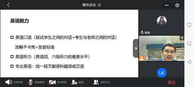讲座中,郑文辉博士首先对参加研究生考试并在初试中取得优异成绩的同学给予高度肯定,并且围绕复试考查内容和形式,自我介绍英语能力、综合面试、学校调剂、网络复试注意事项等方面进行深入的指导。在专业知识方面,不仅要对自己的毕业论文、毕业设计内容了然于胸,也要提前从各方面了解该校本专业的情况与研究方向。在个人谈吐方面,不仅要逻辑清晰、举止大方,还要乐观自信、经济形。同时,考研学子还可以从学信网、学校官网、本校师兄师姐等方面了解往年学校的调剂情况。最后,他强调在疫情防控的背景下,需要做好熟悉网络复试平台,确保复试不被干扰,网络畅通等方面。