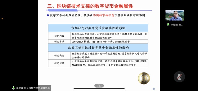 李登峰教授报告题目为区块链技术及其在经济管理中的研究。李教授详细分析了区块链技术在市场中的巨大潜力,并从区块链技术的来源、区块链技术研究相关的主题和热点的实际运用,重点阐述了区块链技术支撑数字货币的金融属性和如何将区块链技术更好地运用到经济管理中。报告会后,李教授与参会师生进行了互动交流,与会师生热情十足地参与到问答互动环节,李教授耐心细致地为大家解答疑惑,师生们受益匪浅。