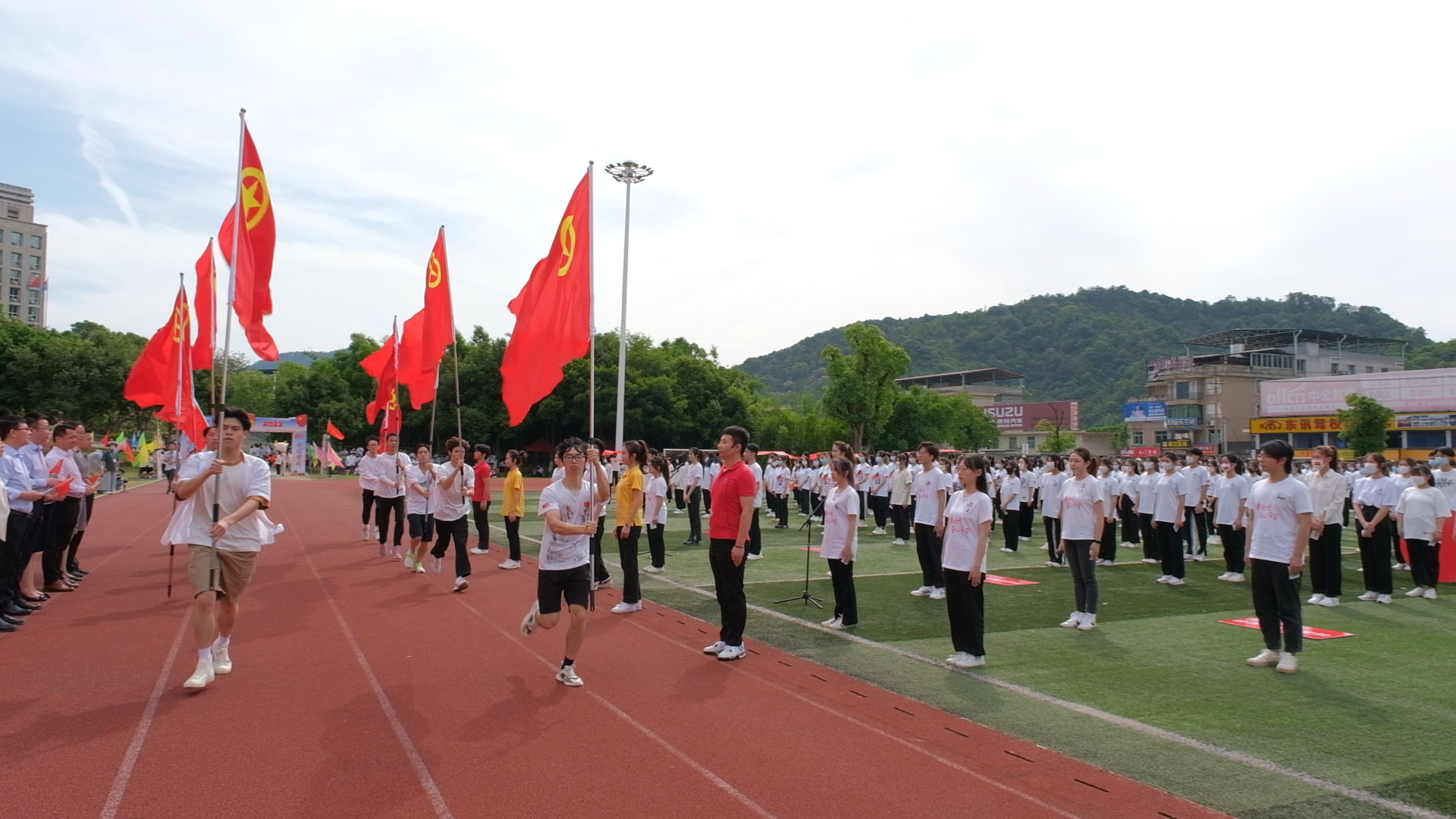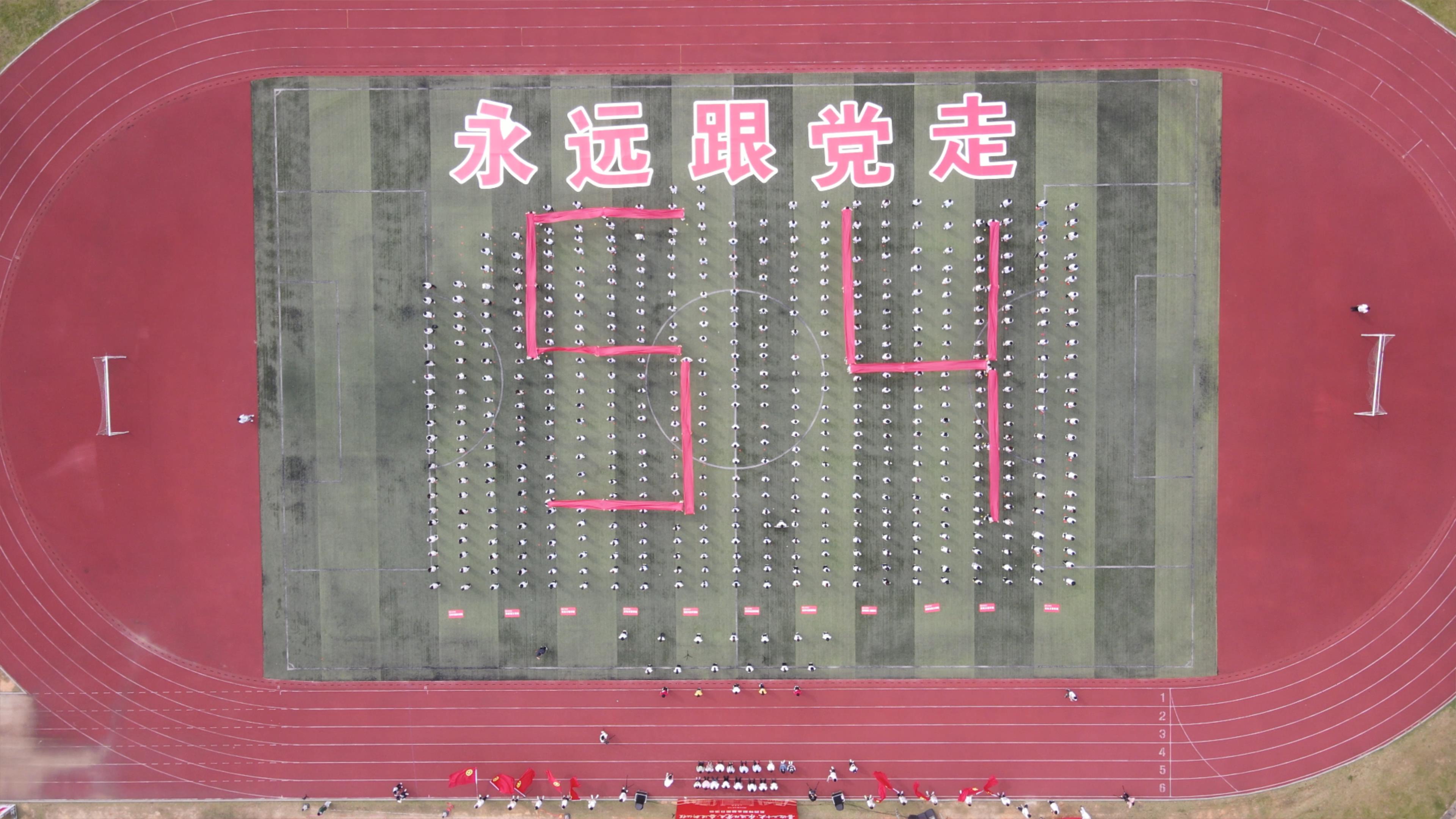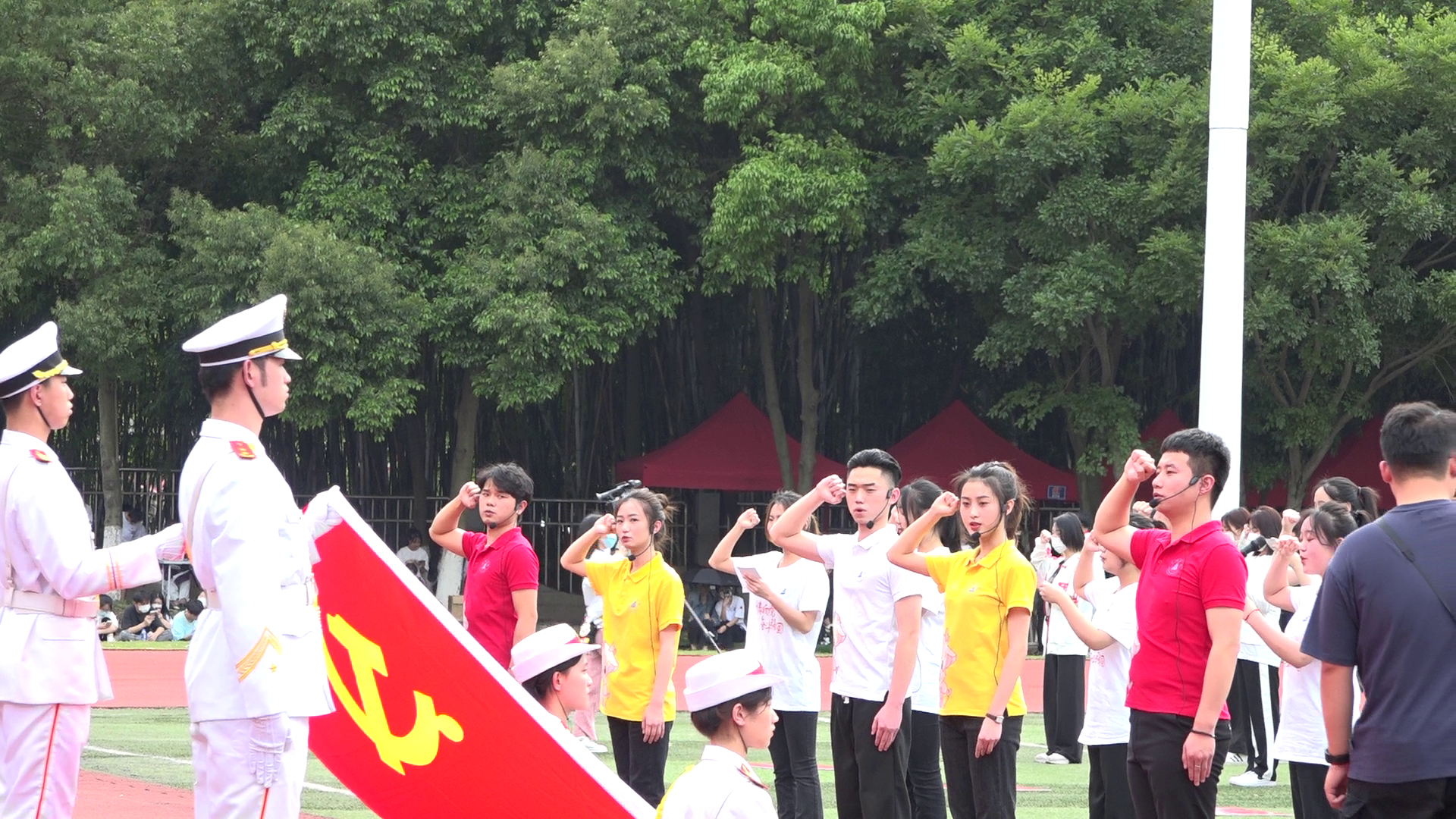 伴随着《领航》的歌声响起,党旗引领着团旗在操场上奔跑传递,象征着党有号召、团有行动的优良传统,代表着共青团员永远跟党走的不渝信念。在迎风招展的旗帜下,学生们带来诗朗诵《青春》,“以青春之我,创建青春之家庭,青春之国家,青春之民族,青春之人类,青春之地球,青春之宇宙”,他们用铿锵有力的声音讲述三明学院学子“青春心向党,建功新时代”的志向。
