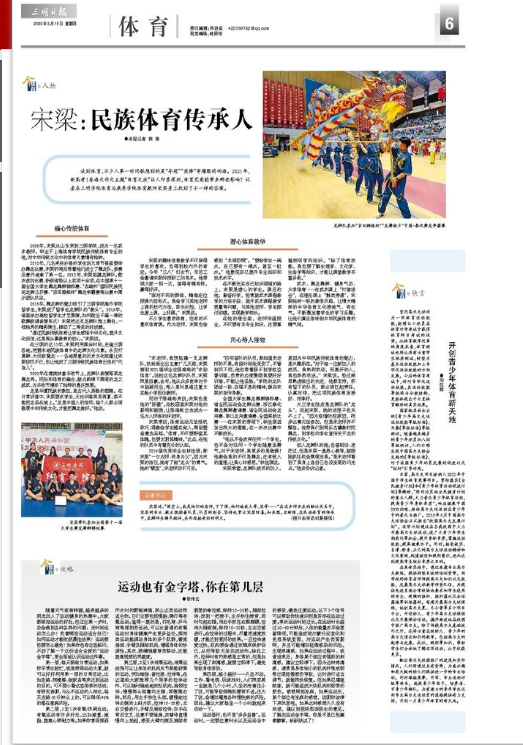 武术、舞龙舞狮、健身气功、大学体育……在武术课上“打练结合”,在理论课上“触类旁通”,宋梁独树一帜的教学风格,让博大精深的中华体育文化接地气、有生气,不断激发着学生的学习乐趣,让他们真正体味到中华民族体育的精气神。