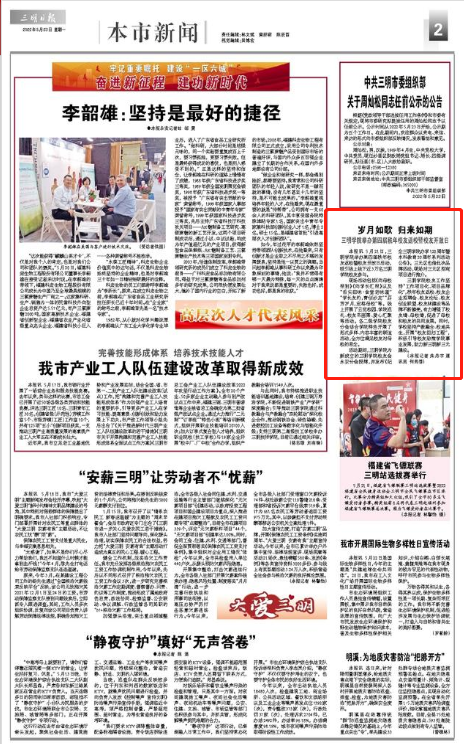 本报讯 5月21日,三明学院举办第四届秩年校友返校暨校友开放日活动,吸引线上线下近3万名三明学院校友参与。现场活动包括《向母校报到》、《向学长汇报》以及舌尖回味·食堂老味道、“学长友约,青创沙龙”、“芬芳岁月,定格母校”等。在云端,学校开展了云览校园、学院巡礼、校友书画展、爱心汇聚等活动。各二级学院校友分会也结合学院特色开展了形式多样、内容丰富的联谊活动,全方位地满足校友对于母校的各种念想。